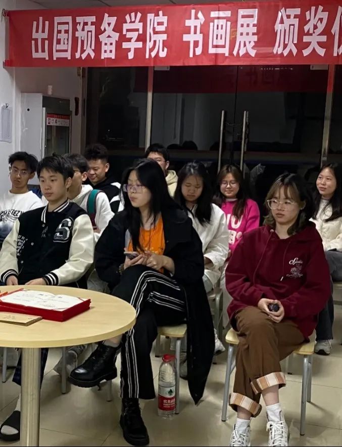 老师在金沙一舍宿管大厅为同学们举行了本次书画比赛颁奖仪式。
