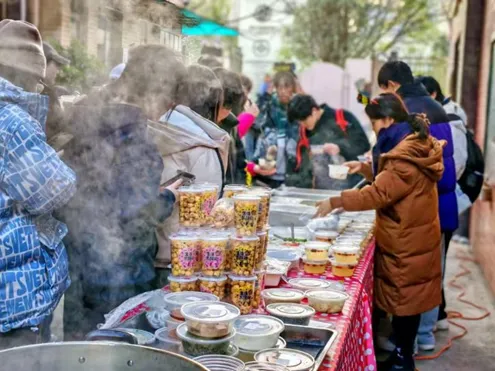 美食摊位上,元旦特色美食与饮品琳琅满目,令人垂涎欲滴。糖葫芦的酸甜、爆米花的香脆、羊肉汤的醇厚、银耳汤的温润、汤圆的软糯……每一种味道都承载着新年的祝福与期待,让同学们在品尝中感受到了节日的温馨与欢乐。