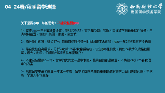 本次讲座为同学们考研后提供了新的思路,面对国内巨大的考研压力、就业压力,同学们考研后根据自身情况,决定是否选择考研留学双保险,目前2024秋季申请已经接近尾声,有考虑留学的同学也建议尽快行动起来,尽早递交申请。祝愿各位同学都能考研顺利,留学成功,多拿offer,选择多多!