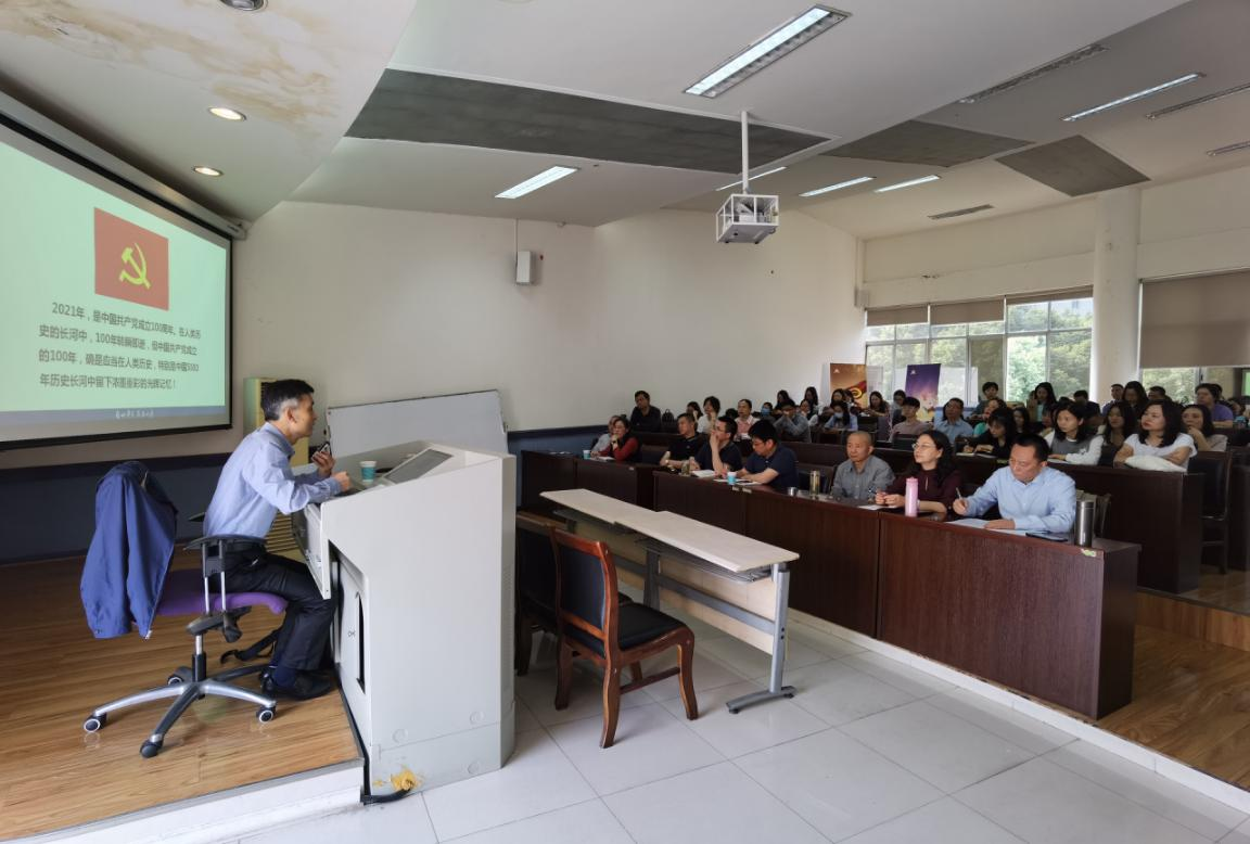 曾朝夕教授以开展党史学习教育的重要性和必要性出发,讲述了中国共产党的百年光辉历程,其中包括中国共产党28年的英勇革命史、欣欣向荣而又艰难曲折的社会主义建设史和波澜壮阔的改革开放史。曾教授谈到,建党以来的100年,党在不同历史时期形成的中国特色社会主义理论是与时俱进、完全能够指导中国社会主义建设的,我们要坚定中国特色社会主义道路、理论、制度和文化自信。他表示,我们通过党史学习教育,要进一步坚定理想信念,在中国特色社会主义现代化国家新征程上,进一步牢记为人民谋幸福、为民族谋复兴的初心使命;在新时代建设中国特色社会主义现代化强国的过程中,立足本职工作,脚踏实地工作。