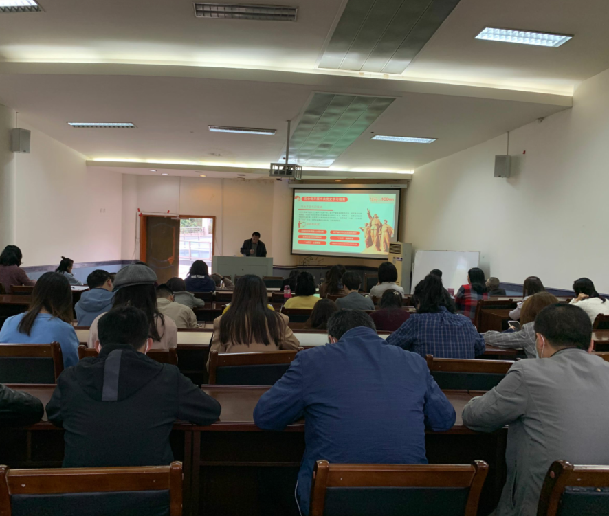 联合党支部在文献中心205教室开展党史学习教育专题党课。支部书记吉松涛以《百年大党,百年辉煌》为题,动员全体党员干部和教职员工学习党史。