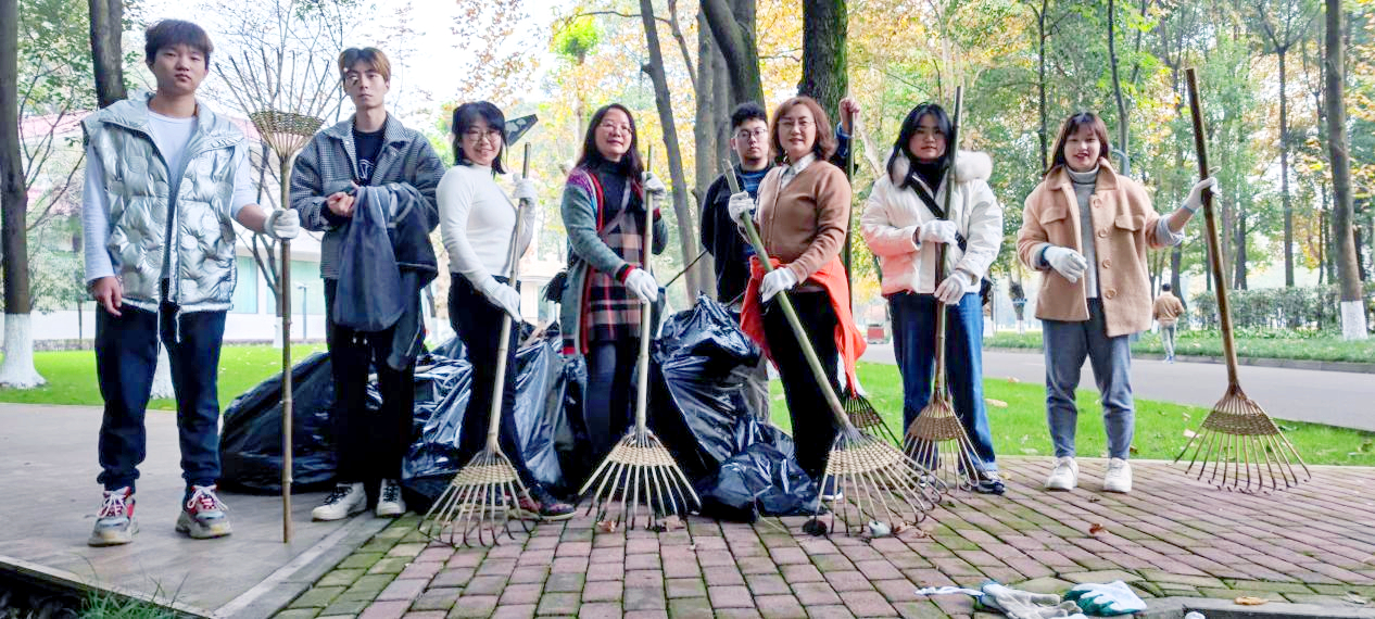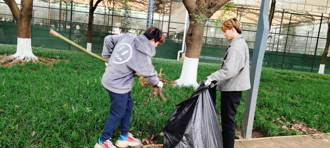 负责对光华校区第一篮球场西侧绿化带开展落叶清扫、垃圾清运等工作,师生一起参加劳动,大家齐心协力,干劲十足。在师生的共同努力下,草坪上的白色垃圾、枯树枝、碎砖石等杂物被捡拾的一干二净,校园环境焕然一新。