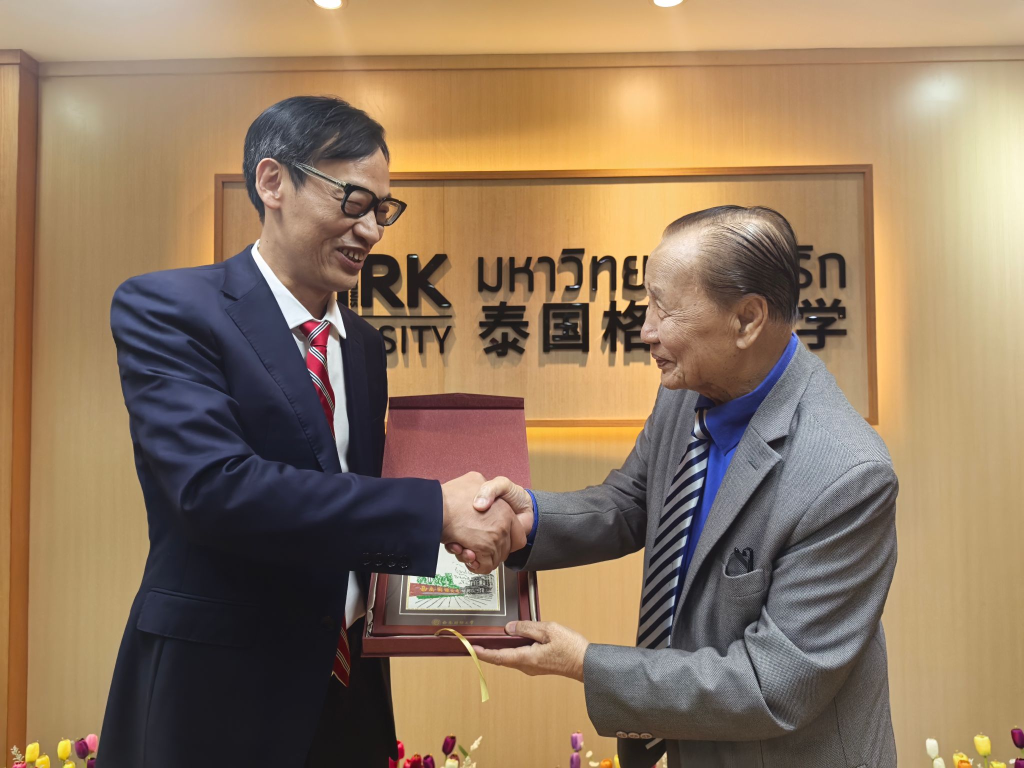 代表团一行与泰国格乐大学校长杨金泉(Krasae Chanawongse)、国际漫画柜