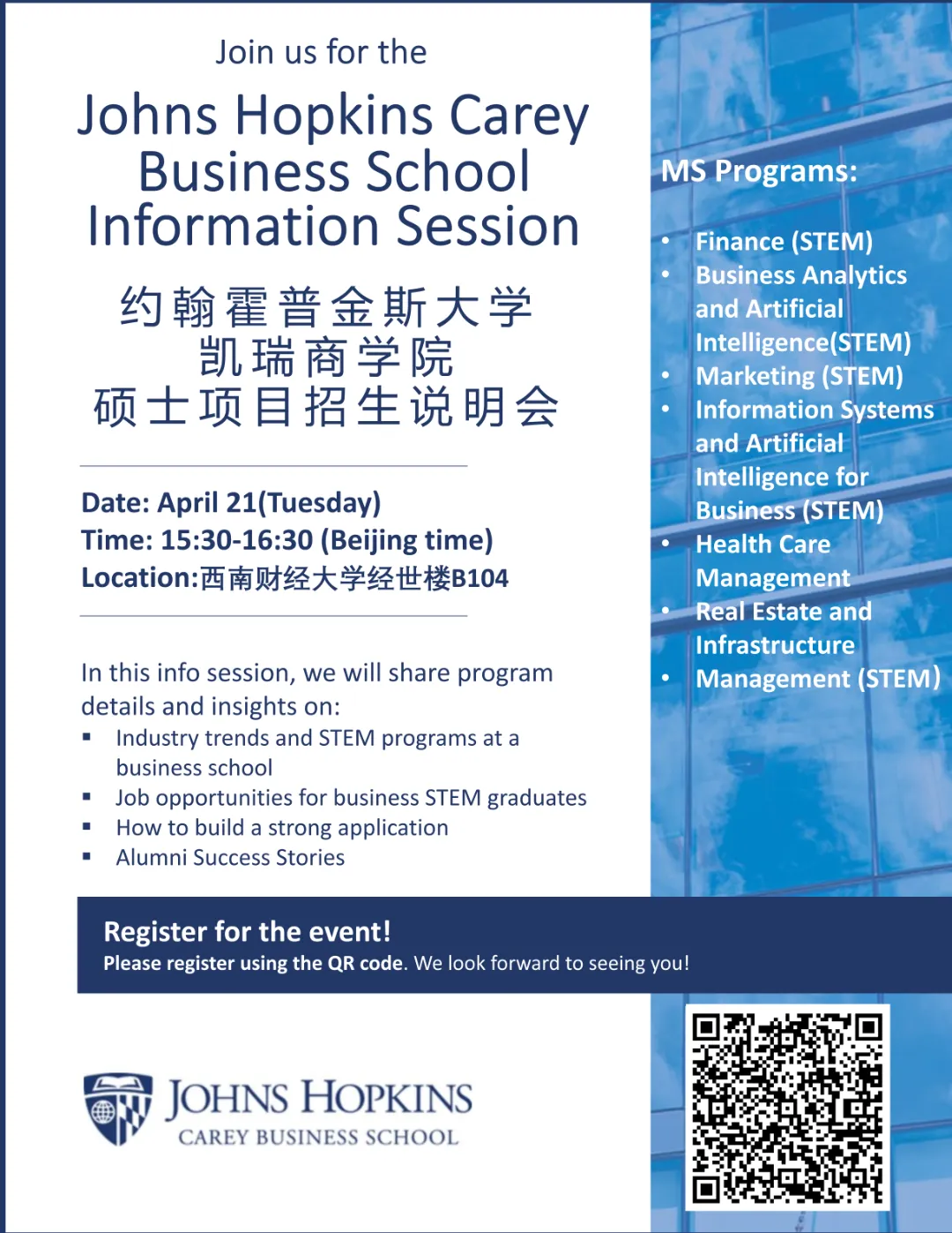 美国约翰霍普金斯大学凯瑞商漫画柜 硕士项目招生说明会