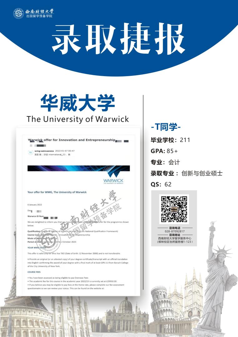 中心2021-2022海外院校部分硕士录取捷报